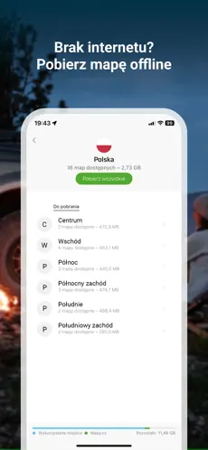 - Dokładne mapy offline – pobieraj mapy całych regionów i korzystaj z nich w trybie offline.