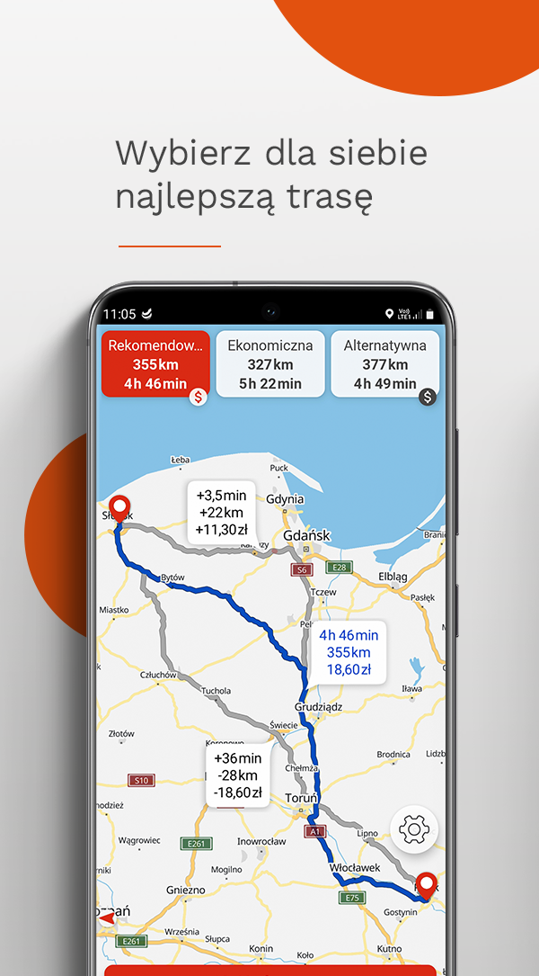 🛣️ Nawigacja w czasie rzeczywistym: Aplikacja na bieżąco analizuje sytuację na drogach i automatycznie wyznacza najszybszą trasę.