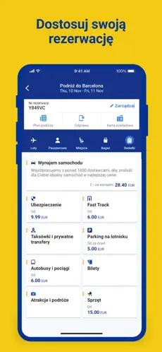 • 🛄 Możliwość zarządzania rezerwacjami, dodawania bagażu, wyboru miejsca oraz zmiany lotów.