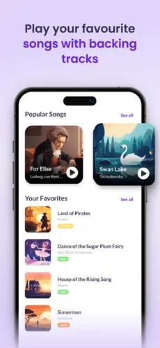 Użytkownicy mają dostęp do ćwiczeń, gam oraz popularnych melodii.