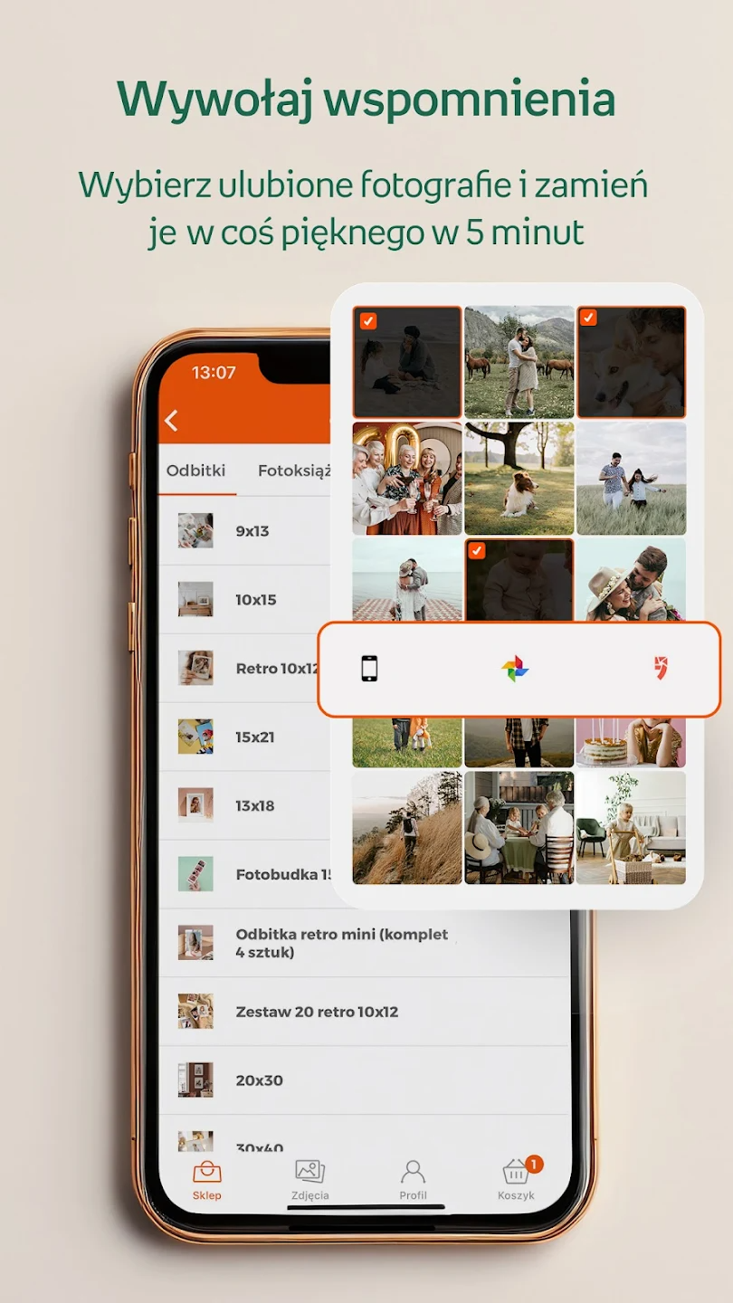 • Zamawianie odbitek online – wybierz zdjęcia z telefonu i zamów je w wybranym formacie.