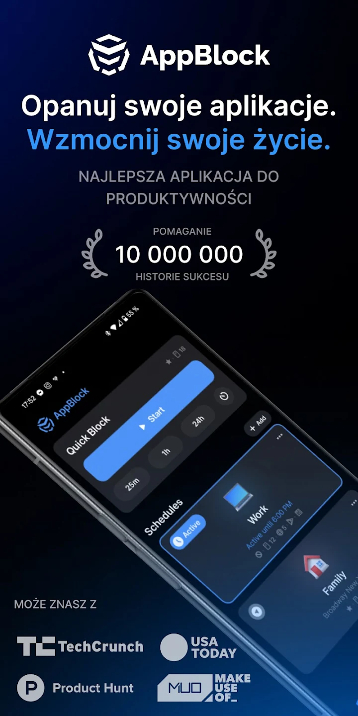 AppBlock – Blokuj Appki, Strony: kontroluj swój czas i skupienie