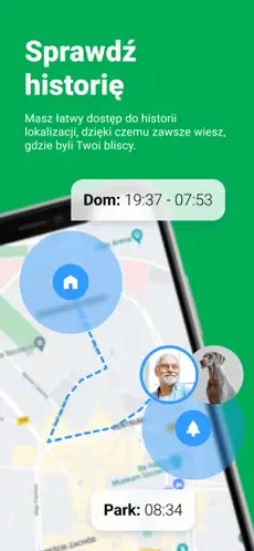 Historia lokalizacji – aplikacja umożliwia sprawdzenie, jakimi trasami poruszała się dana osoba w wybranym okresie.