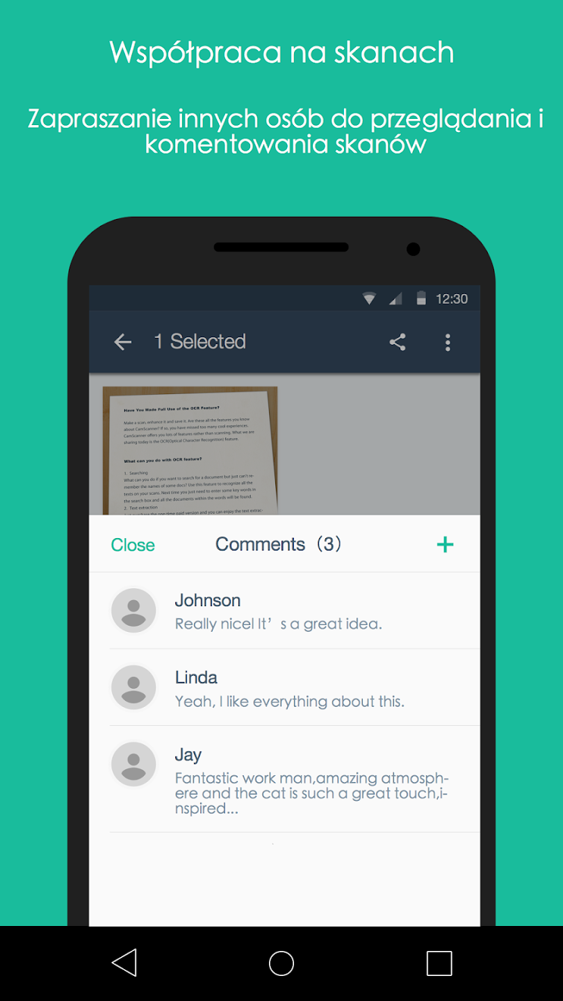 CamScanner oszczędza czas, eliminuje potrzebę korzystania ze skanera stacjonarnego i sprawia, że zarządzanie dokumentami jest znacznie prostsze.