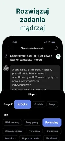 Dzięki AI aplikacja dostosowuje się do potrzeb użytkownika i oferuje spersonalizowane odpowiedzi.
