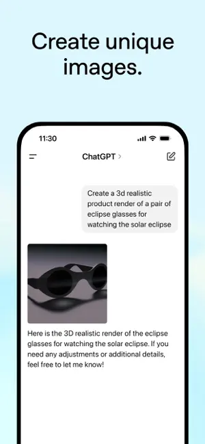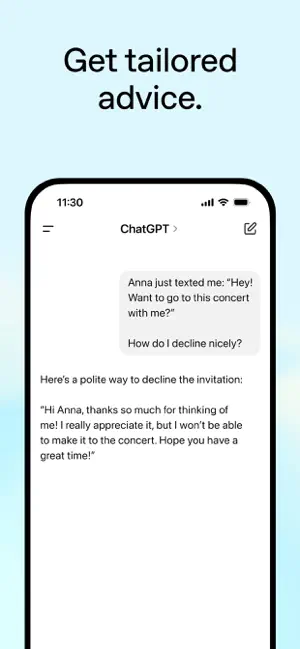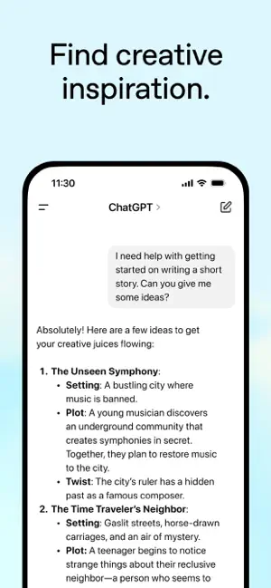 Z oficjalną aplikacją ChatGPT otrzymasz natychmiastowe odpowiedzi i codzienną dawkę inspiracji – bez względu na to, gdzie jesteś. Masz pytanie? Zadaj je i uzyskaj pomoc w każdej chwili!