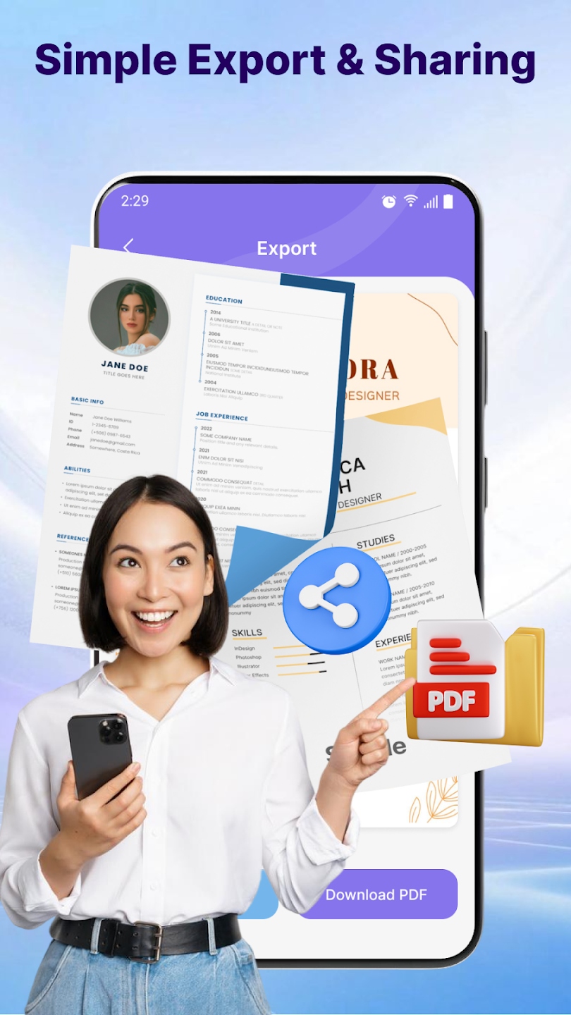 Dzięki intuicyjnemu interfejsowi i gotowym szablonom, aplikacja jest idealnym rozwiązaniem dla osób poszukujących pracy.