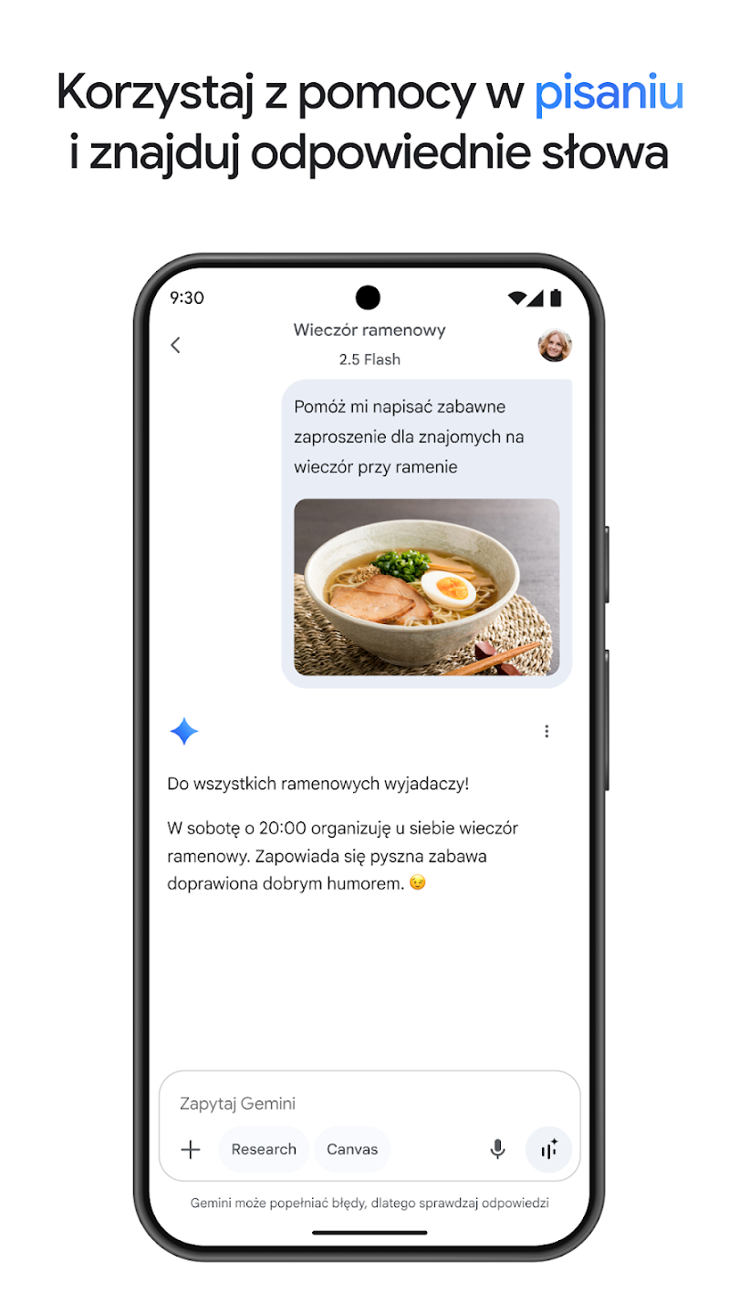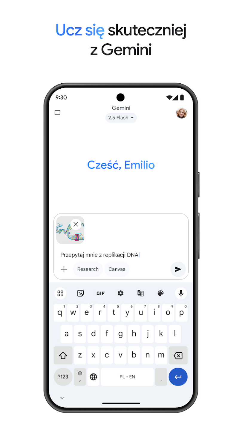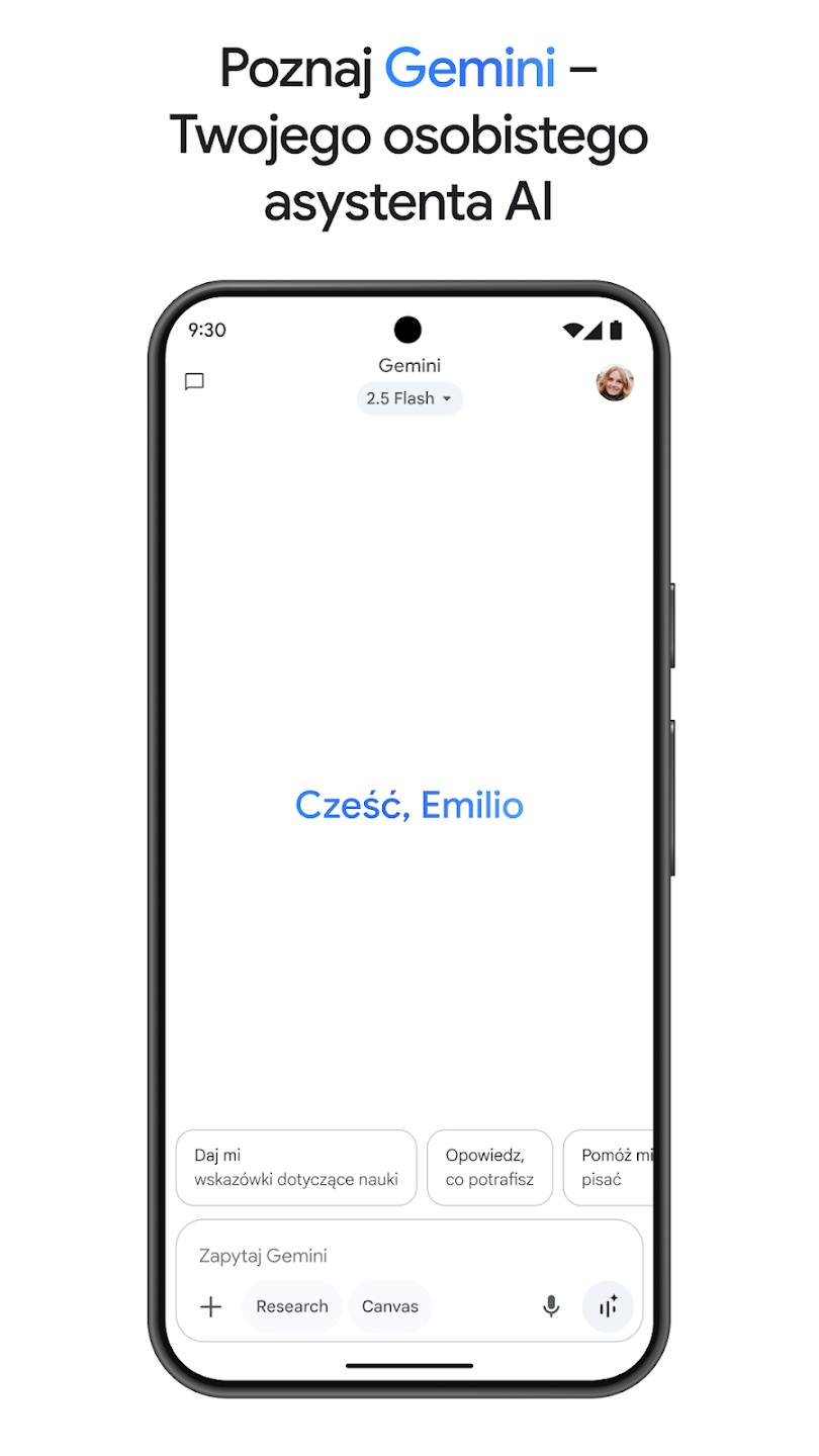 Asystent nauki i pracy – Gemini wspiera w pisaniu e-maili, raportów, prezentacji czy nauce języków obcych.
