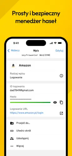 • Bezpieczne przechowywanie haseł – wszystkie dane są chronione szyfrowaniem AES-256.
