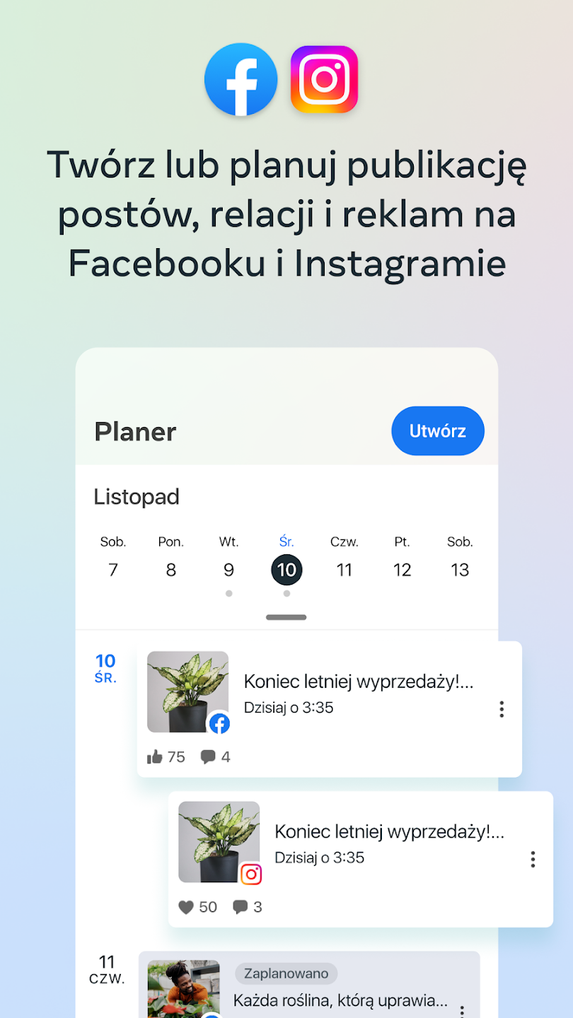 Pobierz aplikację, zaplanuj swoje treści, monitoruj wyniki i rozwijaj swój biznes w social mediach.