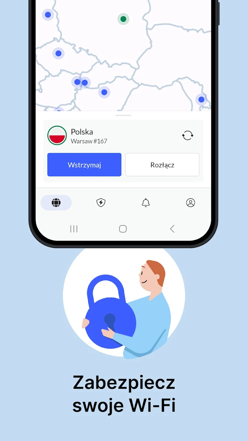 Aplikacja wykorzystuje silne protokoły szyfrowania (m.in. NordLynx i OpenVPN), które chronią wszystkie przesyłane dane.