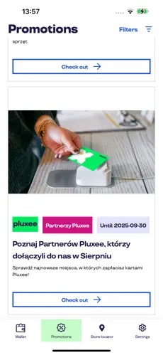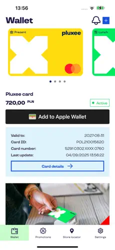 Aplikacja wyposażona jest w praktyczną mapę, która pokazuje sklepy, restauracje, kawiarnie i usługi akceptujące karty Pluxee. Użytkownik może filtrować wyniki i łatwo znaleźć najbliższy punkt.