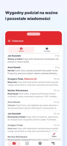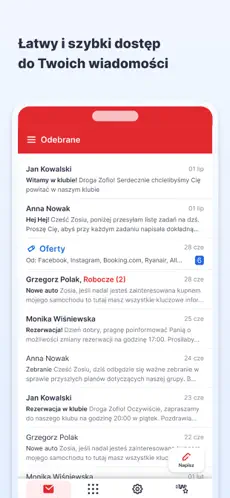 Dzięki natychmiastowym powiadomieniom zawsze wiesz, kiedy otrzymasz nową wiadomość. Nie musisz stale odświeżać skrzynki – aplikacja zrobi to za Ciebie.