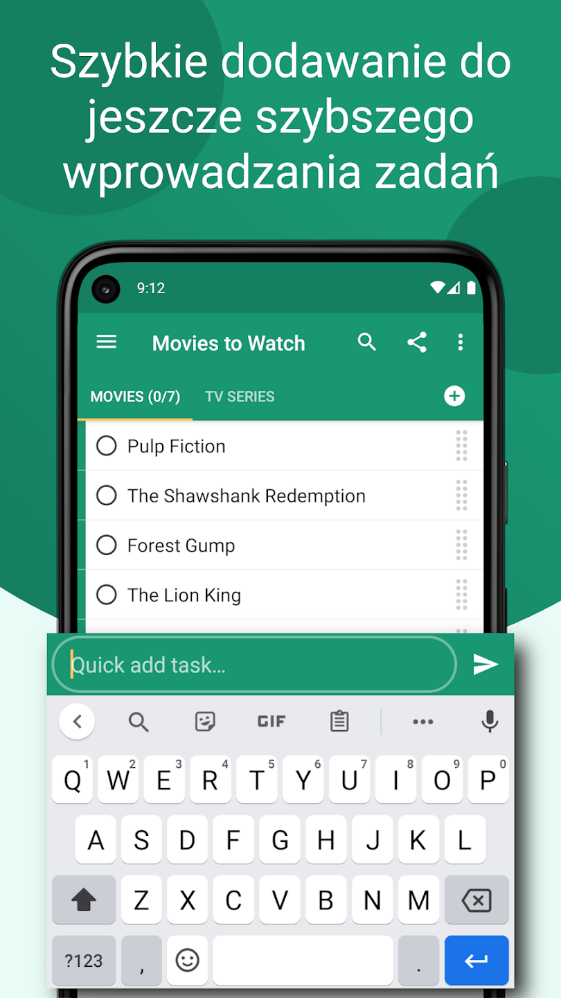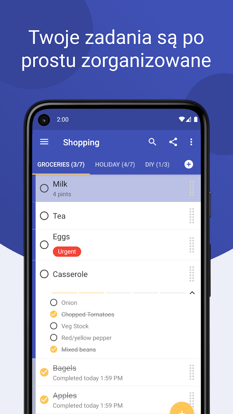 Aplikacja umożliwia szybkie dodawanie zadań, edytowanie ich oraz grupowanie w przejrzyste listy, co ułatwia planowanie dnia lub tygodnia.