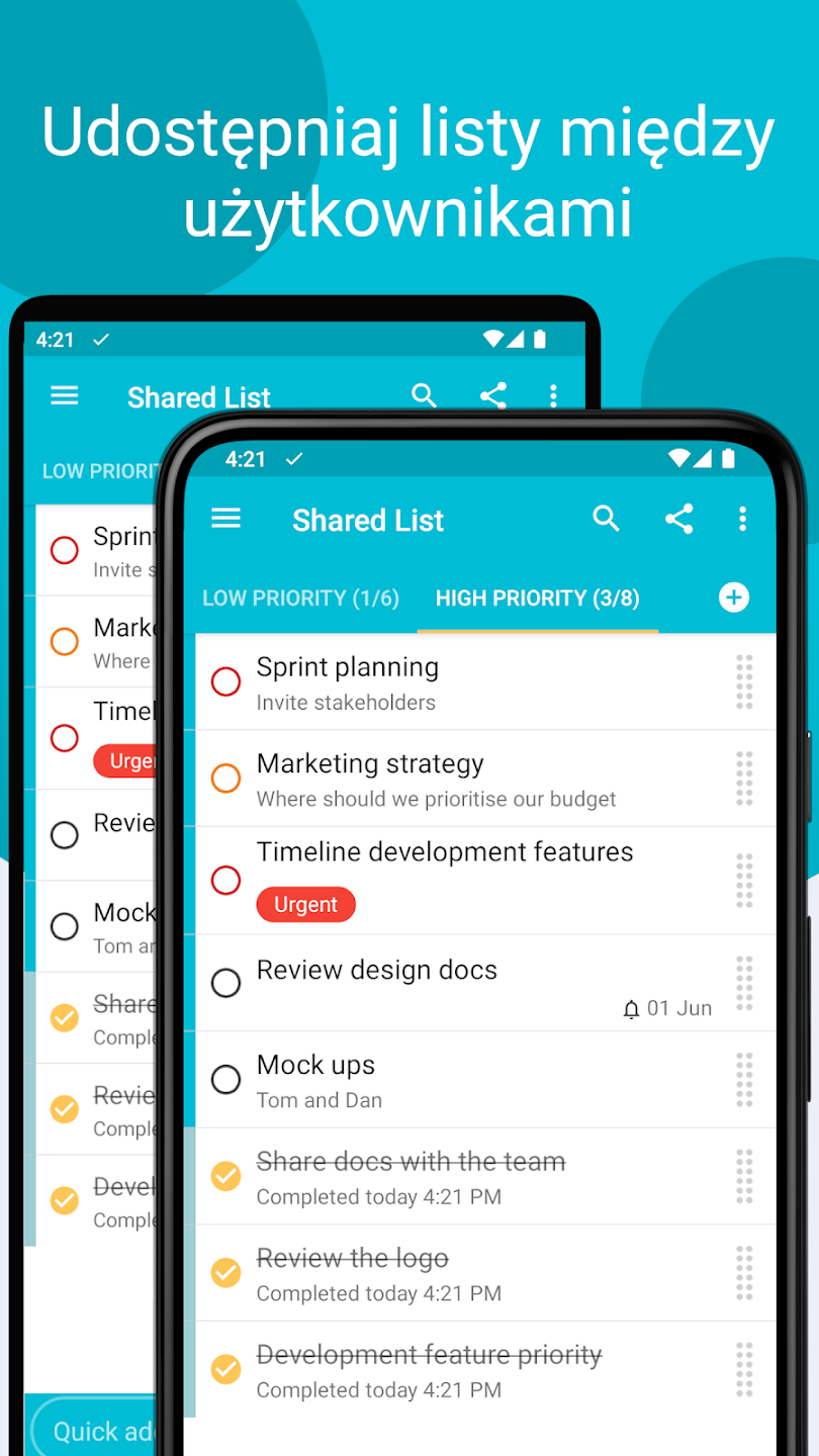 Zadania – listy zadań to-do to niezawodna aplikacja do planowania i organizacji zadań. Prosta obsługa, funkcjonalność i przejrzysty interfejs sprawiają, że jest to idealne narzędzie dla każdego, kto chce zwiększyć swoją produktywność i mieć pełną kontrolę nad codziennymi obowiązkami.