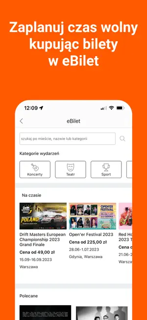 Dostęp do wydarzeń kulturalnych i sportowych z eBilet.pl (np. koncerty, teatr, seanse filmowe, mecze, sporty walki),