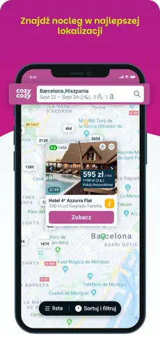 cozycozy – Wszystkie noclegi to innowacyjna aplikacja mobilna, która pozwala w jednym miejscu porównać oferty noclegowe z setek serwisów rezerwacyjnych. Dzięki niej możesz łatwo znaleźć hotel, apartament, domek letniskowy, hostel czy kwaterę prywatną – zawsze w najlepszej cenie i dopasowaną do Twoich potrzeb.
