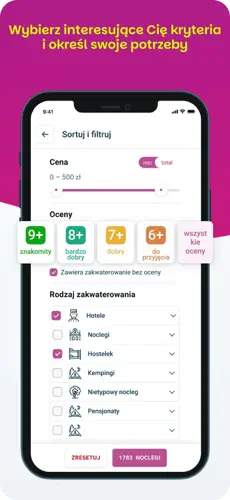 • Filtry wyszukiwania – dopasuj wyniki do lokalizacji, ceny, daty, liczby osób czy udogodnień.