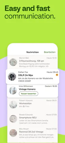 Aplikacja Kleinanzeigen posiada wbudowany system wiadomości, który umożliwia bezpieczny kontakt między sprzedającym a kupującym, bez konieczności podawania danych osobowych.