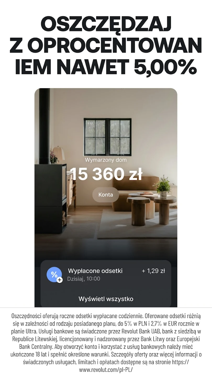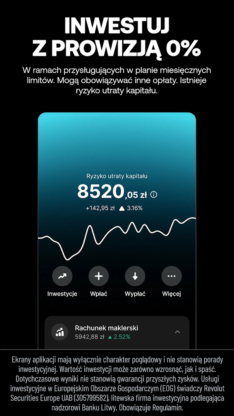 Revolut to innowacyjna aplikacja finansowa, która zmienia sposób zarządzania pieniędzmi. Dzięki niej możesz łatwo płacić, wymieniać waluty, kontrolować wydatki, inwestować oraz oszczędzać – wszystko w jednym miejscu, z poziomu smartfona. Revolut to idealne rozwiązanie dla osób, które cenią wygodę, szybkość i pełną kontrolę nad finansami.
