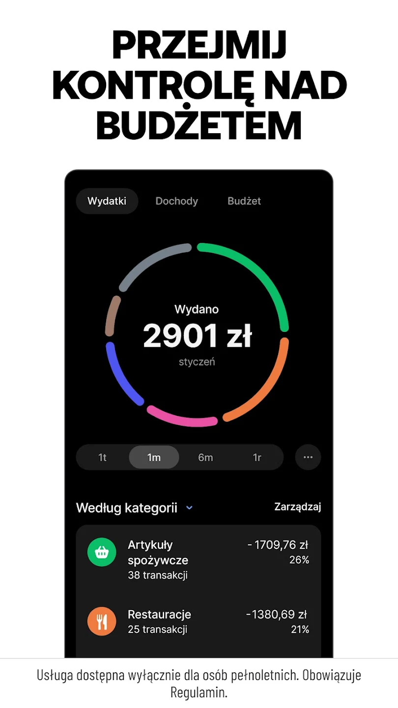 Zarządzanie budżetem i wydatkami – Kategoryzuj płatności, ustawiaj limity i analizuj finanse w czasie rzeczywistym.
