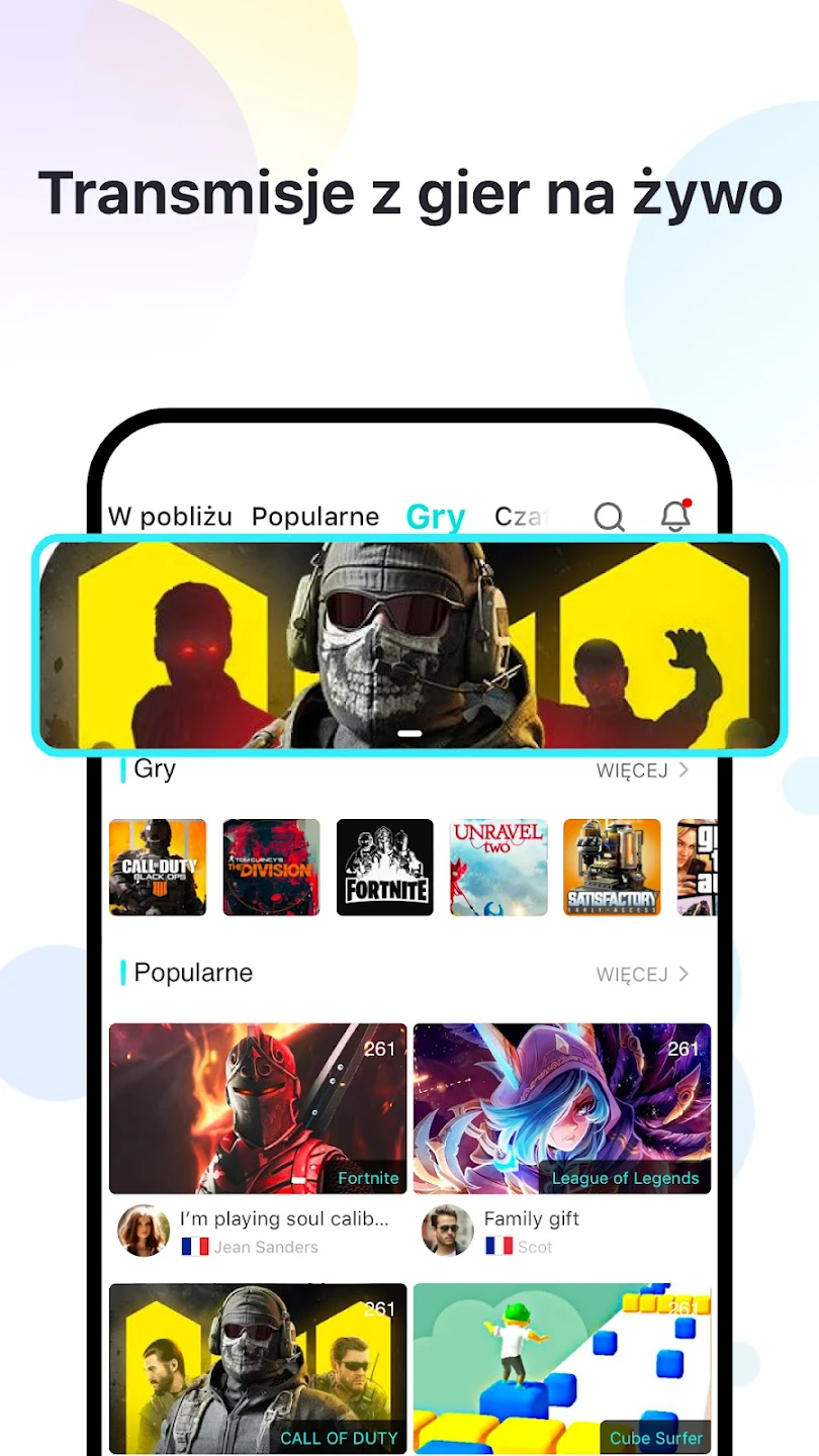 Gry na żywo i interakcje – Graj i baw się z widzami podczas transmisji.
