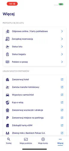Najważniejsze funkcje aplikacji LOT Polish Airlines