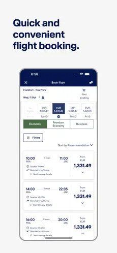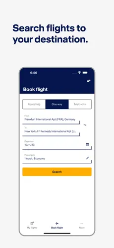 Wyszukuj i rezerwuj loty Lufthansa oraz partnerów Star Alliance w atrakcyjnych cenach – bezpośrednio w aplikacji. -