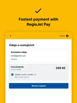 RegioJet to czeski przewoźnik kolejowy i autobusowy, który obsługuje połączenia między największymi miastami Europy, takimi jak Praga, Wiedeń, Budapeszt, Bratysława, Warszawa czy Berlin. Aplikacja mobilna RegioJet umożliwia: