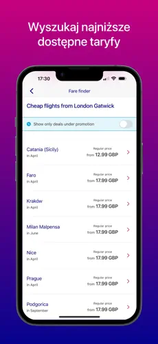 Powiadomienia o promocjach i aktualnych informacjach o locie.